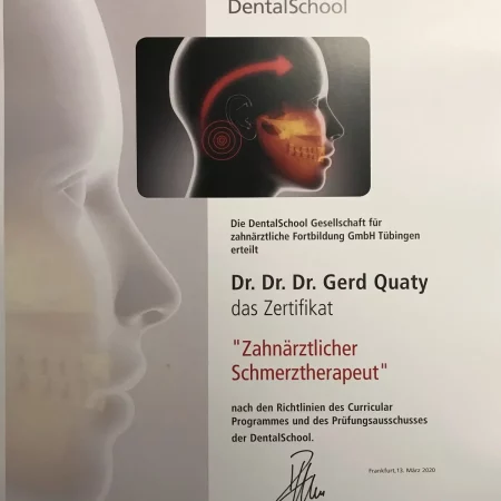Zertifizierung zum “Zahnärztlichen Schmerztherapeuten” (DGZMK)