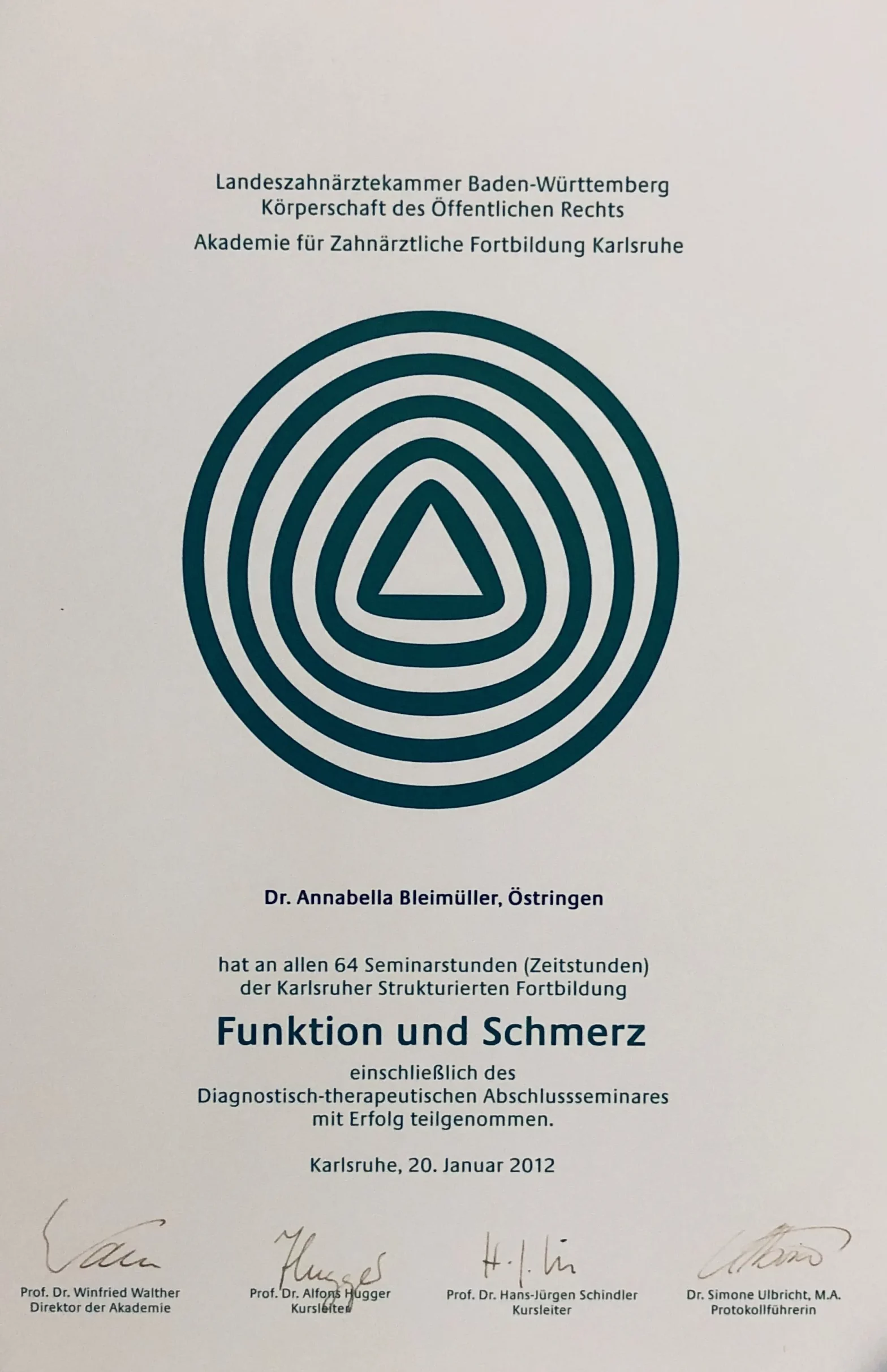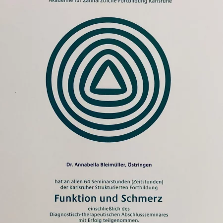 Strukturierte Fortbildungen in der Zahnärztlichen Akademie Karlsruhe und Landeszahnärztekammer Ba.-Wü.: “Funktion und Schmerz”