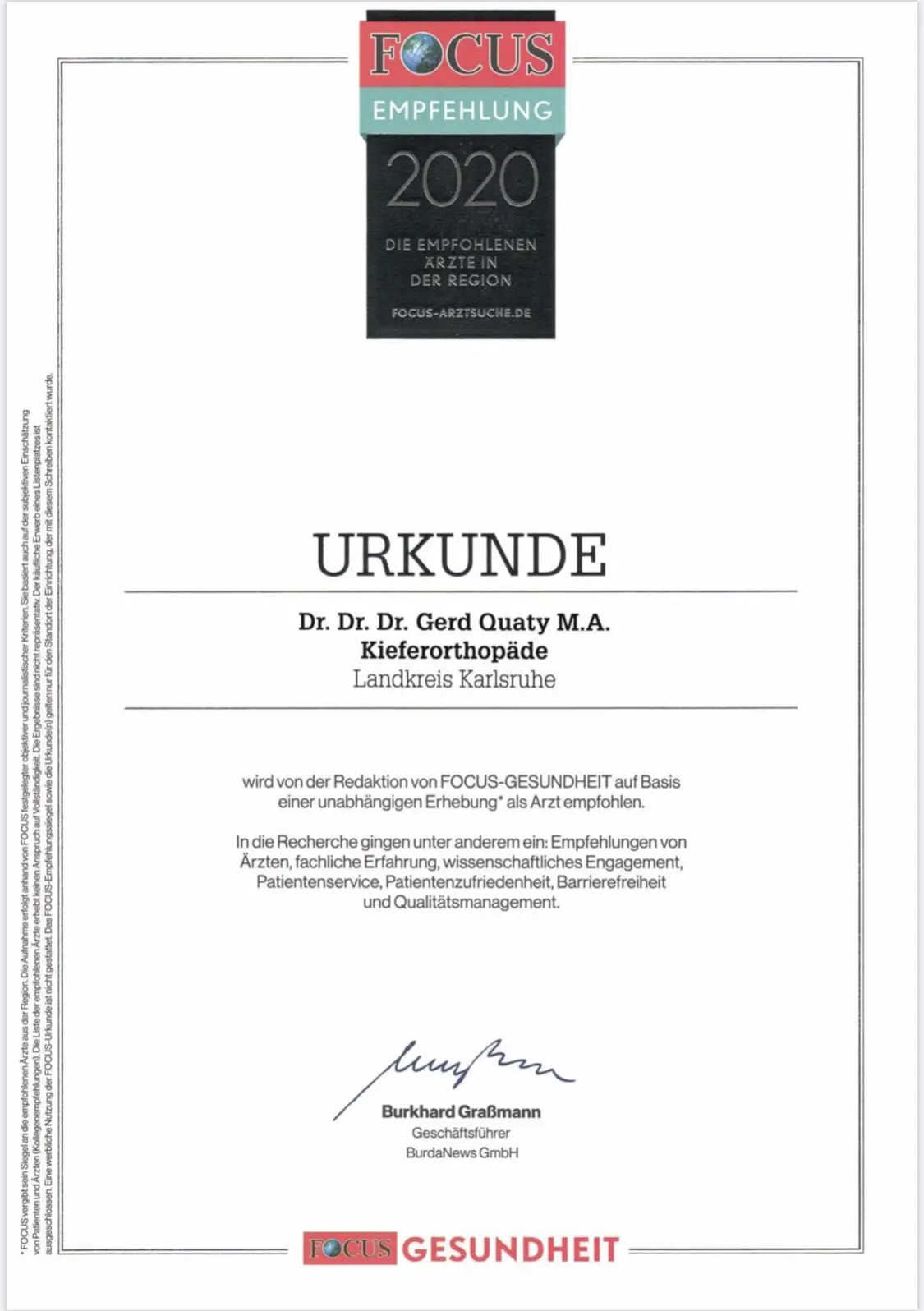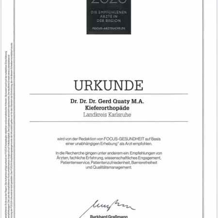Urkunde KFO 2024Und das Beste: Die Behandlung mit dem 3-Schienen-System ist nicht nur wirkungsvoll und schnell, sondern auch viel preisgünstiger als die meisten Alternativen, da sie durch die computergestützte Herstellung deutlich geringere Kosten verursacht. Außerdem ist die Behandlung nahezu schmerzfrei.